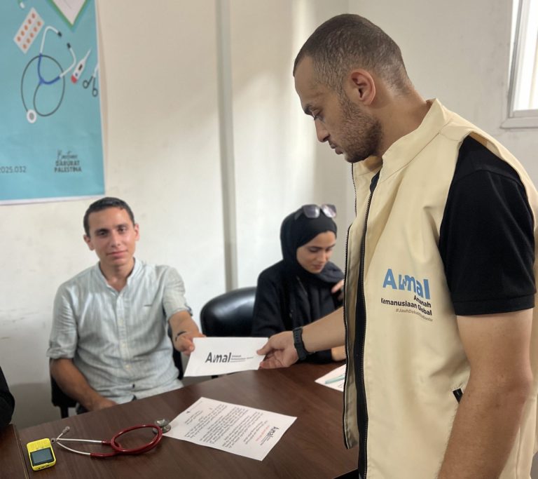 Di sisi lain, AMAL juga memberikan santunan khusus bagi para dokter dan perawat yang bertugas di klinik darurat ini. Tenaga medis di Gaza menghadapi risiko tinggi akibat konflik yang terus berlangsung, dengan banyak kasus dokter dan perawat menjadi korban luka atau bahkan syahid. Dukungan santunan ini bertujuan untuk menghargai pengorbanan dan dedikasi para tenaga kesehatan yang berada di garis depan penanganan medis pada situasi darurat. Santunan ini juga menjadi bentuk semangat dan motivasi agar mereka tetap kuat dalam menjalankan tugas mulia di tengah kondisi sulit dan penuh tekanan.