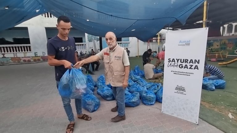 Bandung – Yayasan AMAL kembali menunjukkan kepeduliannya dengan menyalurkan bantuan bahan pangan segar berupa sayuran untuk 100 keluarga di kamp pengungsi Al-Shati, yang terletak di sebelah barat Kota Gaza. Total penerima manfaatnya hingga 600 jiwa yang terdiri dari para pengungsi dan keluarga. Mereka menerima paket sayuran segar tersebut sebagai bentuk dukungan dan bantuan mencukupi kebutuhan nutrisi sehari-hari.